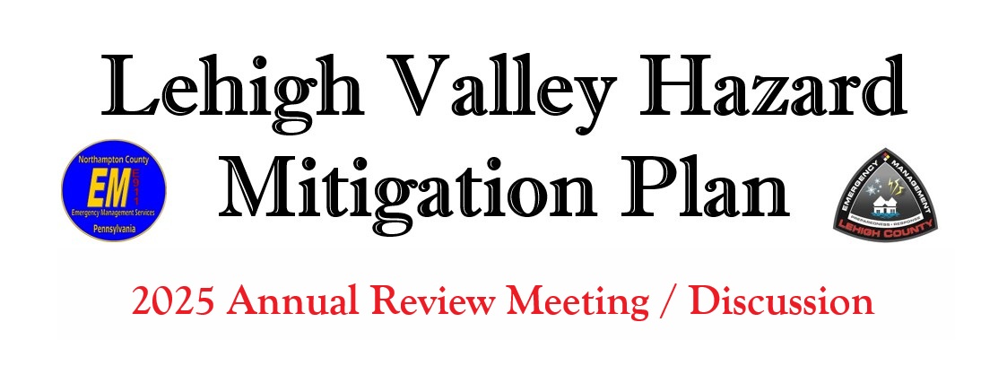 Another year and another FEMA required annual update of the 2024 Lehigh Valley Hazard Mitigation Plan! We hope you all utilize this short survey to RSVP you (and your guests) attendance to one of our scheduled annual review meeting events!